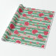 Dieses Packpapier eignet sich hervorragend zum Sommergeburtstag. Das Design zeichnet sich durch ein illustratives Muster von Scheiben einer Wassermelone und grünen und rosa horizontalen Streifen.