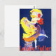 Jules Cheret Folies Bergere Postcard. Lithograph Art Nouveau Poster um die 1890er. Jules Cheret war einer der großen Jugendstil-Poster-Künstler. Seine Arbeit für die Jahrhundertwende Ballets, Bars und Fahrräder ist nach wie vor eines der beliebtesten Plakatwerke der Epoche. Diese Werbung für die Kaberettsaal Folies-Bergere ist eine seiner schönsten und mit einem hübschen, jungen Rotkopftanzen in einem fließenden gelben Kleid ausgestattet. Der Ausdruck ist rot auf blauem Hintergrund. Ein wunderschönes Geschenk für Fans von Jules Cheret, Vintages Kabarett und Jugendstil-Poster.