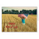 Mädchen läuft in einem Weizenfeld mit Amerikaner für Happy 4. Juli.