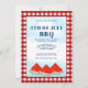 Laden Sie mit dieser Einladung vom 4. Juli Ihre Grillen und Freunde in den Sommer ein. Er ist mit Wassermelonen in Aquarelltönen und einem blauen Himmel auf einem roten und weißen Büffel-Karo-Hintergrund dekoriert. Einfach anpassbar. Diese Festveranstaltung ist perfekt für jeden Amerikanische Unabhängigkeitstag. Ändern Sie mithilfe des Entwurfstools die Textgröße, den Stil oder die Farbe. Weil wir unsere Kunstwerke erstellen, werden Sie dieses exakte Bild von anderen Designern nicht finden. Original Wasserfarbe © Michele Davies.