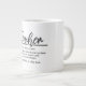 Jumbo Einige Tage, eine normale Tasse Joe wird einfach nicht funktionieren. Wenn du etwas mehr Koffein brauchst, dann hole dir die extra große Kaffeetasse von Zazzle. In sie passen 590 ml. Perfekt für Suppe, Müsli, Eis oder auch Chili! Diese riesige Tasse hat einen C-förmigen Griff für komfortables Trinken. Abmessungen: Höhe: 4,5" Durchmesser: 3,9" Fassungsvermögen: 20 Unzen Mikrowelle und Geschirrspülersicherheit Strong, Keramik construction erfüllt oder übertrifft die FDA-Anforderungen für Lebensmittel- und Getränkeservice Designer Tipp: Um den hochwertigen Druck zu gewährleisten, beachten Sie bitte, dass der anpassbare Designbereich dieses Produkts 4" hoch x 10,5" breit ist