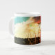Goldener Weizen gegen einen bunten Himmel aus Blau, Gold und lila