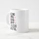 Jumbo Einige Tage, eine normale Tasse Joe wird einfach nicht funktionieren. Wenn du etwas mehr Koffein brauchst, dann hole dir die extra große Kaffeetasse von Zazzle. In sie passen 590 ml. Perfekt für Suppe, Müsli, Eis oder auch Chili! Diese riesige Tasse hat einen C-förmigen Griff für komfortables Trinken. Abmessungen: Höhe: 4,5" Durchmesser: 3,9" Fassungsvermögen: 20 Unzen Mikrowelle und Geschirrspülersicherheit Strong, Keramik construction erfüllt oder übertrifft die FDA-Anforderungen für Lebensmittel- und Getränkeservice Designer Tipp: Um den hochwertigen Druck zu gewährleisten, beachten Sie bitte, dass der anpassbare Designbereich dieses Produkts 4" hoch x 10,5" breit ist