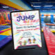 lassen Sie uns JUMP Geburtstagsparty Einladung mit Kindern springen auf einem Trampolin.