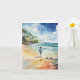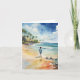 Diese Grußkarte zeigt ein Aquarellbild eines Jungen, der den Strand entlang geht.