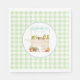 Niedliche Bäuermarkt-Servietten mit Gingham und Gemüseständer.