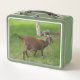 Diese junge braune Ziege kontrastiert schön mit dem hellgrünen Weideland auf dieser schönen Nevada Ranch. Design von Diane Blackman.