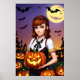 Junge Dame braune Haare mit Kürbis | Art der AI Poster