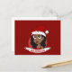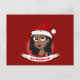 Postcard mit einer Illustration einer schönen jungen Afrikanerin mit schwerem Haar und Hut des Weihnachtsmanns; mit bearbeitbarem Textvorlage, Weihnachtsfeierdesign mit rotem Hintergrund