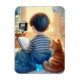 Ein Magnet mit diesem bezaubernden jungen Jungen, der Bücher liebt und Zeit mit seiner Katze verbringt. Stellen Sie sich eine Szene hinter einem kleinen Jungen auf seinem Bett vor, seine Decke umhüllte ihn. Er ist in ein Geschichtenbuch eingefasst, während seine Katze von hinten anschaut.