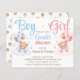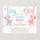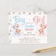Junge oder Mädchen Baby Teddy Bär auf einer Wolke mit Ballons Geschlecht offenbaren Party Budget Einladung.