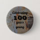 Dieser Knopf bietet eine einzigartige Möglichkeit, jemanden zu erkennen und zu feiern, der 100 Jahre jung ist. Der Hintergrund ist mit einem rustikalen braunen und beigen Baumrinde-Muster versehen. Diese Rinde erscheint papierdünn und erzeugt einen neutralen Hintergrund für Ihren Text. Alle Texte inklusive Alter können personalisiert sein, um Ihre Bedürfnisse zu Anzug.