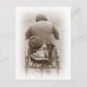 Junge und Mops, die auf der Postkarte fahren