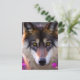 Junge Wolfe in fuchsienrosa Blume Postkarte