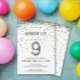 Jungen 9. Geburtstagsparty, primäre Farbcofetti Einladung