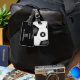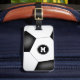 Dieses soccer-Thema Gepäckanhänger ist einfach mit einem abstrakt vergrößerten Single schwarz-weiß Fußball - personalisieren Sie mit Monogramm auf der Vorderseite, Adressinformationen auf der Rückseite - von katz_d_zynes
