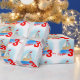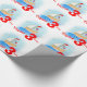 Geburtstags-Packpapier, das wenig hölzernes Boot mit Segel und Flagge an einem windigen Tag in Meer in Blauem und in Rotem kennzeichnet. Personifizieren Sie dieses wunderliche Jungengeburtstagspapier mit Ihrem Namen und Alter. Liest z.Z. Taylor 3 heute. Einzigartig gemalt im Aquarell und durch Sarah Trett entworfen.