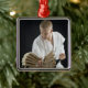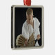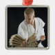Junger Mann, der an Bretter mit Karatehieb bricht Silbernes Ornament