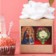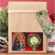 Elegantes, künstlerisches und klassisches Design aus Vintagem Gemälde mit einer blumengeschmückten Weihnachtskrone mit rotem Band, Mistelen und hellen 3D Edelsteinen. Italienisches Meisterwerk aus dem späten Mittelalter aus Beato Angelico , Florenz - Italien