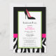 Ein niedlicher Junggeselinnen-Abschied mit einem Bild eines schwarzen High-Heel-Schuhs und einem schwarz-weißen Zebrahintergrund. Ideal für jede Braut. ZURÜCK, füllen Sie einfach alle Details oder lass mir wissen und ich kann es für Sie personalisieren.