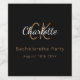 Für einen eleganten Junggeselinnen-Abschied. Ein klassischer schwarzer Hintergrund. Personalisieren und fügen Sie einen Namen, Monogramm-Initialen und das Datum ein. Der Name ist in goldener Farbe mit einem modernen handgeschriebenen Stilskript geschrieben. Weiße und goldene Buchstaben.