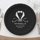 Verleihen Sie Ihrer Vorhochzeitsfeier mit diesen eleganten Junggesellenabschied-Papiertellern einen besonderen Schliff. Mit einem schlanken Schwarz-Weiß-Smokingdesign und einer raffinierten Fliege-Silhouette ist dies die ultimative Dekoration für einen luxuriösen, formellen Junggesellenabschied. Sie sind eine einzigartige Möglichkeit, Ihre Veranstaltung unverwechselbar zu machen. Das Design ist vollständig anpassbar, um den Namen des Bräutigams und alle Ihre Veranstaltungsdetails einzubeziehen, was sie perfekt für jeden Trauzeugen oder Hochzeitsplaner macht, der einen polierten, unverwechselbaren Touch zu einem Junggesellenwochenende oder einer anspruchsvollen Feier hinzufügen möchte.