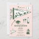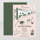 Ein süßes handgezeichnetes Design mit Illustrationen im Thema Junggesellinnen-Camping. Dieses grüne und rosa Camp-Bach-Wochenende-Design ist ideal für Glamping-Camping-Junggesellinnen-Wochenenden, Camping-Mädels-Trip-Junggesellinnen-Partys in den Bergen, im Wald oder am See.