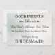 Diese 5" x 7" schöne Werden Sie meine Brautjungfrau? Einladungskarte. Das ist am besten für die Braut. Wenn Sie jemanden gefragt haben, um Ihre Brautjungfrau für Ihre zukünftige Hochzeit zu sein, dann wählen Sie doch diese Bräunungskarten. Diese individuelle Einladungskarte lässt Ihren Freund, Schwesterfreund, Cousin, Neffe, Tochter oder den anderen, den Sie sich aussuchen, sich so besonders fühlen. Diese Einladung ist leicht personalisiert, indem Sie auf die Schaltfläche Anpassen unter dem Bild klicken, wo Sie den Text, den Schriftart und die Größe ändern können. Mit diesen klassischen Einladungen können Sie Ihre besten Freunde stilvoll einladen. Es eignet sich für Blume, Trauzeugin oder für Ehrenmatron. Schicke ihnen diese Karte.