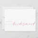 Dieses minimalistische Design ist perfekt für die moderne Braut! Mit einem handgeschriebenen Signaturskript gepaart mit einem einfachen serifenlosen Schriftart in einem rot-rosa für einen subtilen Pop. Personalisieren Sie Ihre eigene Nachricht auf der Rückseite, oder bestellen Sie sie leer und schreiben Sie Ihre Nachricht handschriftlich. Karo in den Shop für passende Maid/Matron of Ehrenkarten!