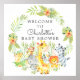 Herzlich willkommen in unserem niedlichen Begrüßungsschild mit einem niedlichen Elefanten, Giraffen, Affen, Zebra & Löwen gerahmt mit DschungelBlätter & Hibiskus Blume.
