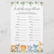 Jungle Tiere Thema Baby Dusche Finish Mommy's Phrase Game-Karte bietet eine Aquarell Safari Dschungeltiere Illustration und Aquarell Grüne Eukalyptus Garland und elegante handgeschriebene Stil Schriftart.