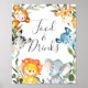 Geben Sie Ihren Gästen mit unserem Dschungeltierschild "Food and Drinks" eine hübsche Richtung, das Aquarell-Grünland Eukalyptus-Garland und der elegante Schriftart im handgeschriebenen Stil.