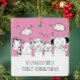 Das erste Weihnachtsdekor des Babys ist mit einer süßen Giraffe, Hippo, Löwe, Bär & Elefant-Set auf rosa Hintergrund gestaltet. Personalisieren Sie mit Ihren Babyinformationen und Datum und Sie sind alle Set zu gehen! Wunderschönes datiertes Sake-Geschenk für die 1. Weihnachtsfeier Ihres Babys.