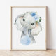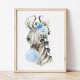 Fügen Sie mit diesen wunderschönen Kunstdrucken die Touchs in das Kinderzimmer oder Kinderzimmer Ihres Babys ein! Das Design umfasst Dschungeltiere (Löwe, Giraffe, Elefant, Zebra), blauen Kaugummi, blaue Aquarellfarben und Blume.