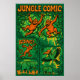 Ein lebendiges und farbenfrohes Dschungelambiente, das sich in diesem Kunstwerk im Stil eines Comic erfreut. Mit frechen Affen, Urwaldelefanten und einem steilen Toucan fängt es die Energie und das Wunder des Regenwaldes ein. Dieses Design eignet sich perfekt für Kinder, für die spielerische Dekoration oder für Tierfreunde. Es verleiht dem Comic seinen Charme und tropische Atmosphäre.