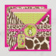 Safari druckt, Giraffe, Zebra, Gepard und ein Punktmuster mit Polka, Affen hängen an einem Rebstock und 3D-Look Tags, Bögen, trimmt die Einladungskarte zum fünften Geburtstag.