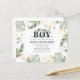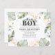 Wilde, ruhige und elegante Jungs Safari Baby Dusche Einladung mit einer Giraffe, Goldeffekt und grünen Blätter. Ideal für Jungen mit Baby Dusche Einladung. Fügen Sie auch Ihre Rücksendeadresse auf der Rückseite hinzu, um Ihre ganz eigene Postkarte zu erstellen