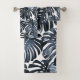 Votre femme va adorer cet ensemble tropical de serviettes de bain de Jessica Amber. Ces serviettes personnalisables disposent de grands feuilles de jungle bleu foncé sur un arrière - plan blanc. Vous pouvez modifier la couleur de l'arrière - plan au besoin, ou remplacer les feuilles par votre propre photo. 🌿 Pour plus de design exotique de plage, visitez mon magasin Zazzle.com/DriftwoodAndDreams 🌿 Pour des commandes sur mesure, envoyez-moi un message sur Zazzle