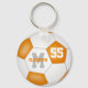 Dieser sportliche Fußball-Schlüsselanhänger mit den für Mädchen und Jungen passenden Mannschaftsfarben verfügt über einen klassischen Fußballball, auf dem Sie den Namen, den Monogramm- oder den Varianzbuchstaben und die Trikotnummer des Spielers leicht anpassen können - die typischen schwarzen Fußball-Panels sind in Orange aufgezeichnet - von katz_d_zynes