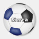 Dieser benutzerdefinierte Fußball-Magnet für Jungen oder Mädchen zeichnet sich durch das realistische Bild eines Fußballballs aus, der blaue, schwarze und weiße Panels aufweist - den Namen des Spielers, das Monogramm und die Trikot-Nummer anpassen - durch katz_d_zynes