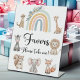 Ein charmantes Design mit lächelnden Dschungeltieren und eleganter Kalligraphie!