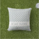 Juniper Green und White kleine geometrische Muster für Terrasse und Deck. Pastel Green Boat Name Kissen mit klassischem japanischem SHIPPO-Muster und moderner minimaler Typografie. Platzierung von Bootsnamen auf beiden Seiten. Das elegante Design verkörpert Power, Konzentration und das Zusammenspiel verschiedener Elemente. Eine mächtige Deck-Dekorations-Idee und eine schöne Geschenkidee für Bootsfahrer und Segler. #ybeedesign #ybeesea #boatnamepillow #nauticalpillow Patio deck dekorative Ideen aus ozeanischer Liebe © Design y.BEE SEA