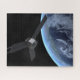 Das Konzept des Künstlers von Juno Raumsonde während seiner Erdfliege durch Schwerkraft hilft. Auf der Erde darunter ist der Südatlantische Ozean, zusammen mit der Küste Argentiniens, sichtbar.