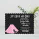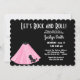 Retournez les mains du temps avec cette jupe cool à poodle. Invitation à la fête d'anniversaire avec une jupe de caniche rose et les mots, Let's Rock and Roll. Le dos de la carte est rempli de petits canicules blancs. Customisez avec les détails de votre fête.