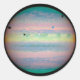 Zwei der Monde überquerten das Gesicht des Jupiter zur gleichen Zeit wie die drei Schatten. Jupiter erscheint in Pastellfarben in diesem Foto, weil die Beobachtung in fast infrarotem Licht aufgenommen wurde. Astronomen kombinierten Bilder, die in drei fast infraroten Wellenlängen aufgenommen wurden, um dieses Farbbild zu machen. Das Foto zeigt Sonnenlicht, das von Jupiterwolken reflektiert wird. Im nahen Infrarot beschränkt Methan in der Atmosphäre des Jupiter die Durchdringung des Sonnenlichts, was dazu führt, dass Wolken in verschiedenen Farben je nach Höhe erscheinen. Gelbe Farben zeigen hohe Wolken an, rote Farben senken Wolken und blaue Farben noch tiefere Wolken in der Atmosphäre des Jupiter. Die grüne Farbe in der Nähe der Pole kommt von einem dünnen Dunst sehr hoch in der Atmosphäre. Ganymedes blaue Farbe kommt aus der Absorption von Wassereis auf seiner Oberfläche bei längeren Wellenlängen. Ios weiße Farbe kommt von Licht, das von hellen Schwefelverbindungen auf der Oberfläche des Satelliten reflektiert wird.