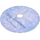 Un design de style bokeh utilisant un joli glam bleu, "Joyeux Noël" est écrit sur la jupe d'arbre avec votre nom en dessous. Oeuvre : Sonya DeHart Design http://www.sonyadehartdesign.com |http://www.sonyadehartdesign.etsy.com