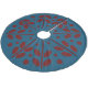 Art populaire scandinave Jupe de Noël pour un Noël nordique moderne naturel. Cette jupe aux motifs floraux est ornée d'un bleu-vert profond et d'un rouge bordeaux.