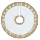 Souvenez-vous de l'année 2020, l'année du blocage, avec cette jupe commémorative de Noël en or et blanc ornée de petites silhouettes de coronavirus blanc. La légende dit 2020 l'année du verrouillage en caractères blancs modernes