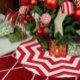 Jupon De Sapin En Polyester Brossé Chevron rouge et blanc festif