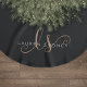 Jupe d'arbre monogramme moderne Black Gold Feminine Script. Personnalisez facilement ce dessous de verre de jupe d'arbre moderne avec votre monogramme et votre nom personnalisés.